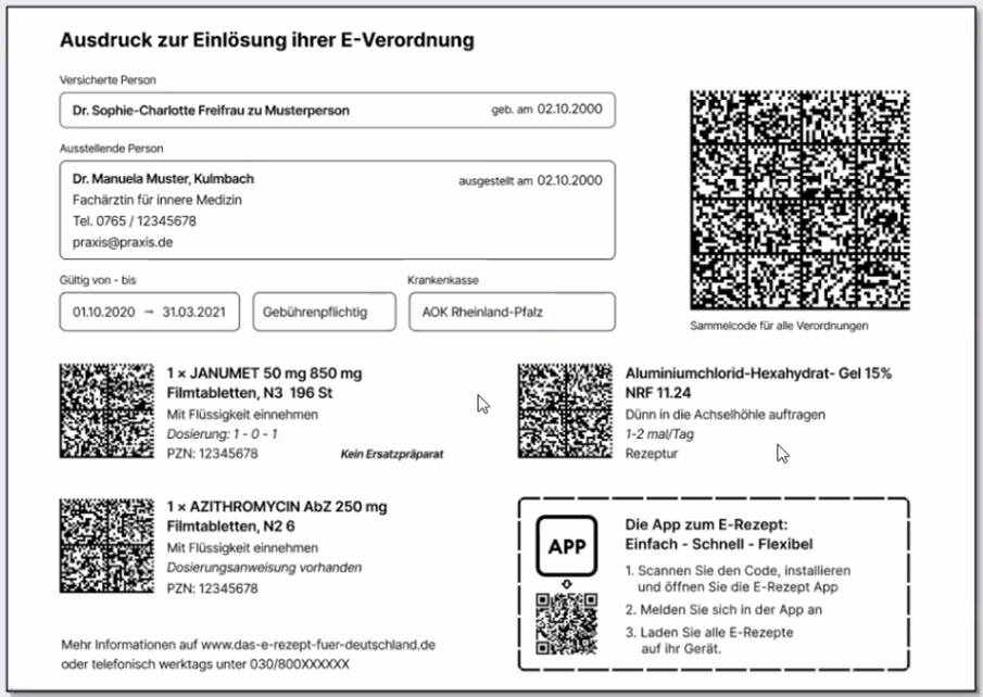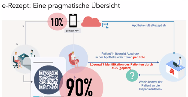 Da nicht alle Versicherten die gematik-App nutzen können oder wollen, gehen grobe Schätzungen davon aus, das zu Beginn 90 % der E-Rezepte über eine ausgedruckte E-Verordnung ausgestellt werden.
